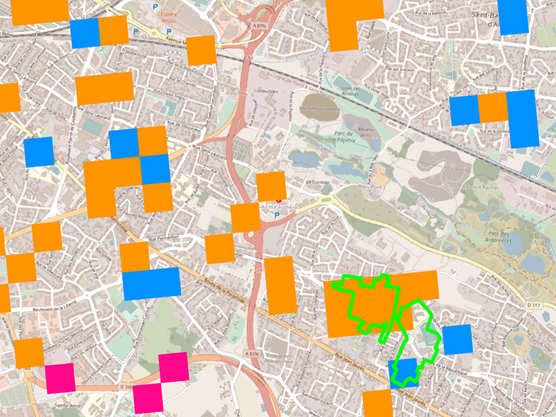 À partir des fichiers locaux sociaux et fiscaux (FILOSOFI) de l’INSEE, il est possible de calculer des seuils de pauvreté à l’échelle fine de carrés de 200 x 200 mètres. Ils permettent de cartographier la pauvreté économique et donc de déceler des dynamiques de concentration, relégation voire ségrégation dans des quartiers de la ville, voire des communes à une échelle plus large.